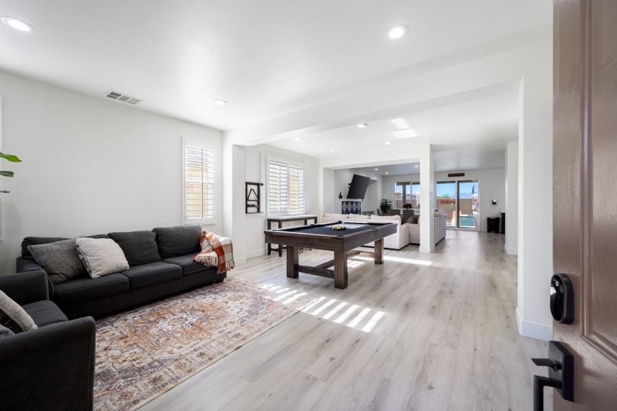 The property sleeps 16 people and has a dreamy back yard perfect for all your family gatherings and large family vacations.